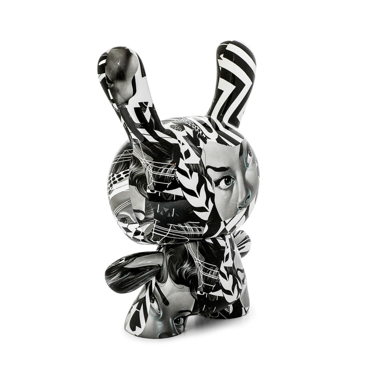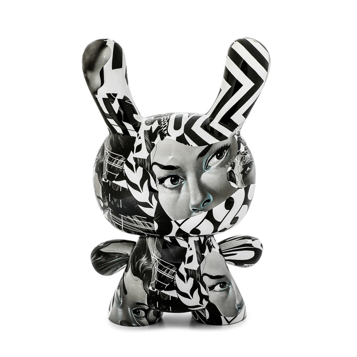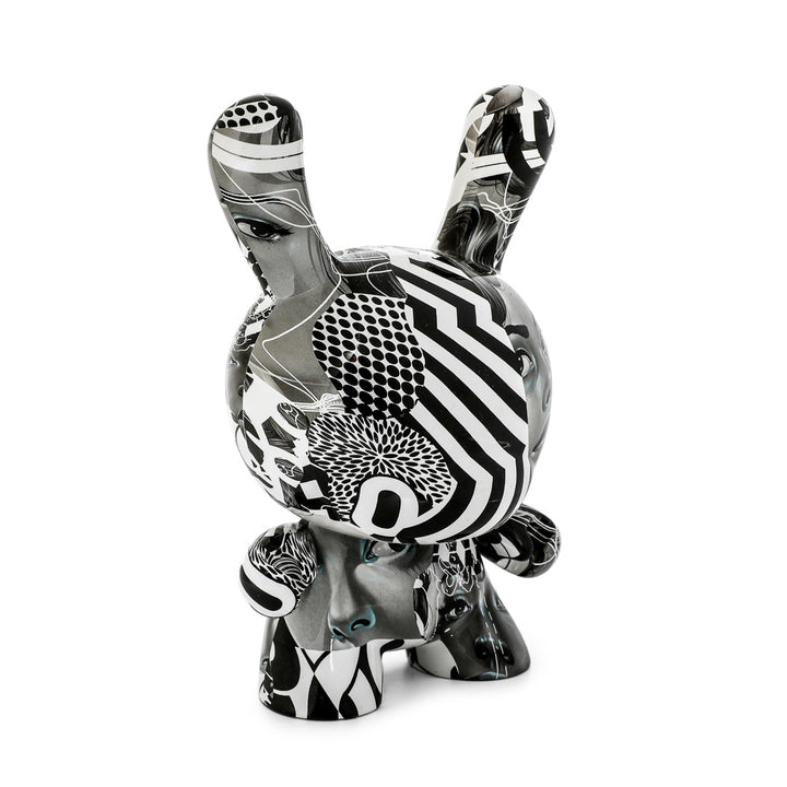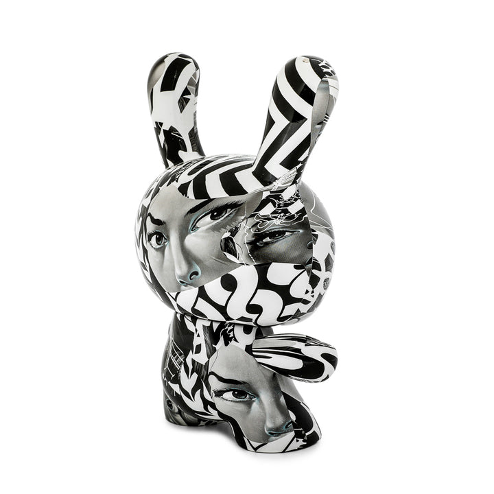 Each Monochromic Dunny is a unique masterpiece, blending stunning portraiture with intricate layered collage, ensuring that every piece exudes its own distinctive personality. The hydro-dip technique employed in its creation results in subtle variations across each figure, as a film of paint is floated on water and then gently applied to the vinyl. This process allows the paint to adhere perfectly to every contour, resulting in a seamless, original pattern. This limited-edition Dunny is numbered on the bottom of the foot.