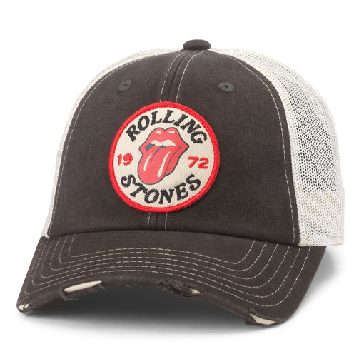 Washed cotton twill five-panel structured crown with mesh middle and back panels. Pre-curved visor and plastic snapback. Front panel stripes and logo are matte screen print.