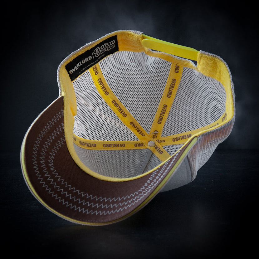 💛🌪️ Curious by nature. Mischief by instinct. The OVERLORD x Curious George Trucker Cap flips storybook innocence into clean, elevated street energy. Soft cream crown. Suede-textured tan brim. Bright pop-yellow interior heat. Subtle from a distance — statement up close.