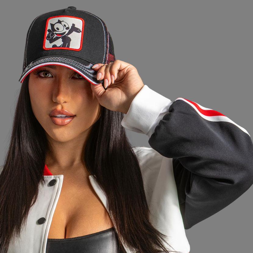 The OVERLORD x Felix the Cat Trucker Cap keeps it stripped down and sharp. All-black crown. Clean contrast stitching. That bold red interior flash. Timeless energy with modern edge.