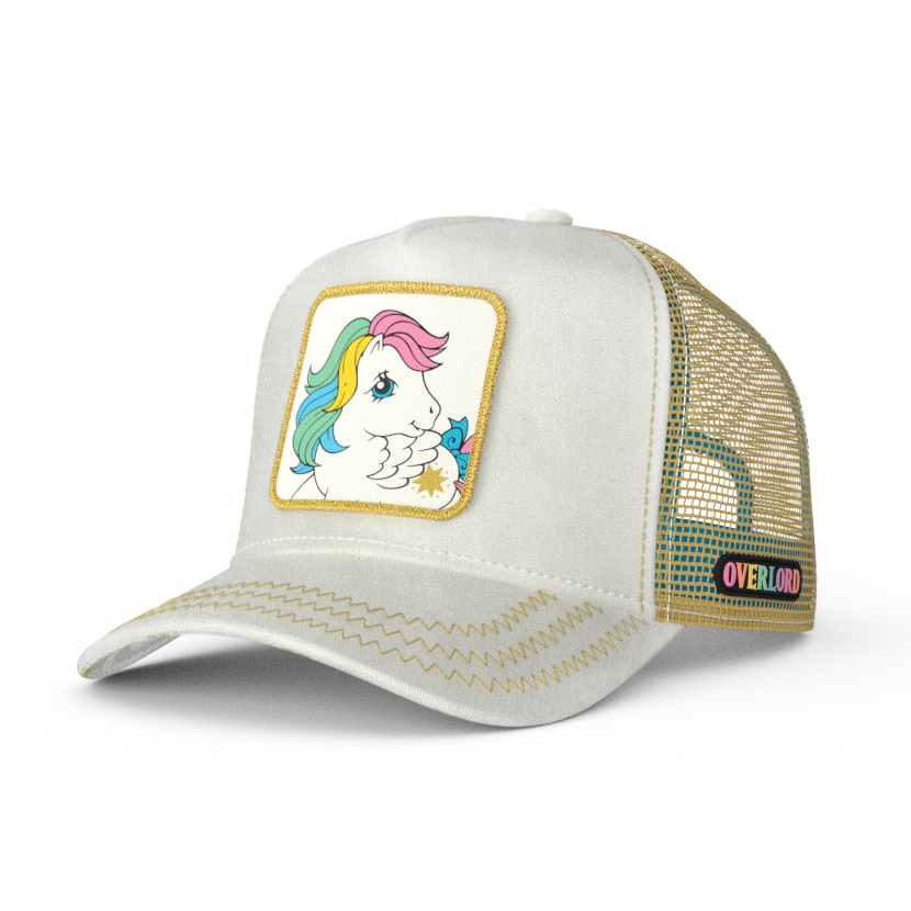 With Starshine’s pastel mane flowing across a woven patch framed in gold, every detail sparkles with nostalgic brilliance. The crisp white crown, golden mesh, and underbrim patterned in starbursts guarantee your vibe is less “background extra” and more “main character energy.”