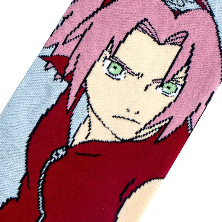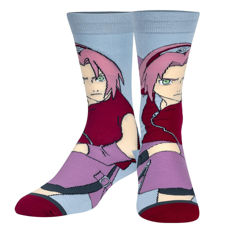 Harness the power of the ninja warrior in this licensed collection of anime Naruto socks. These crew socks feature a full graphic print of Sakura in her iconic fighter stance. Made with 100% premium cotton creating a double layered bottom for maximum cushion and pain relief.