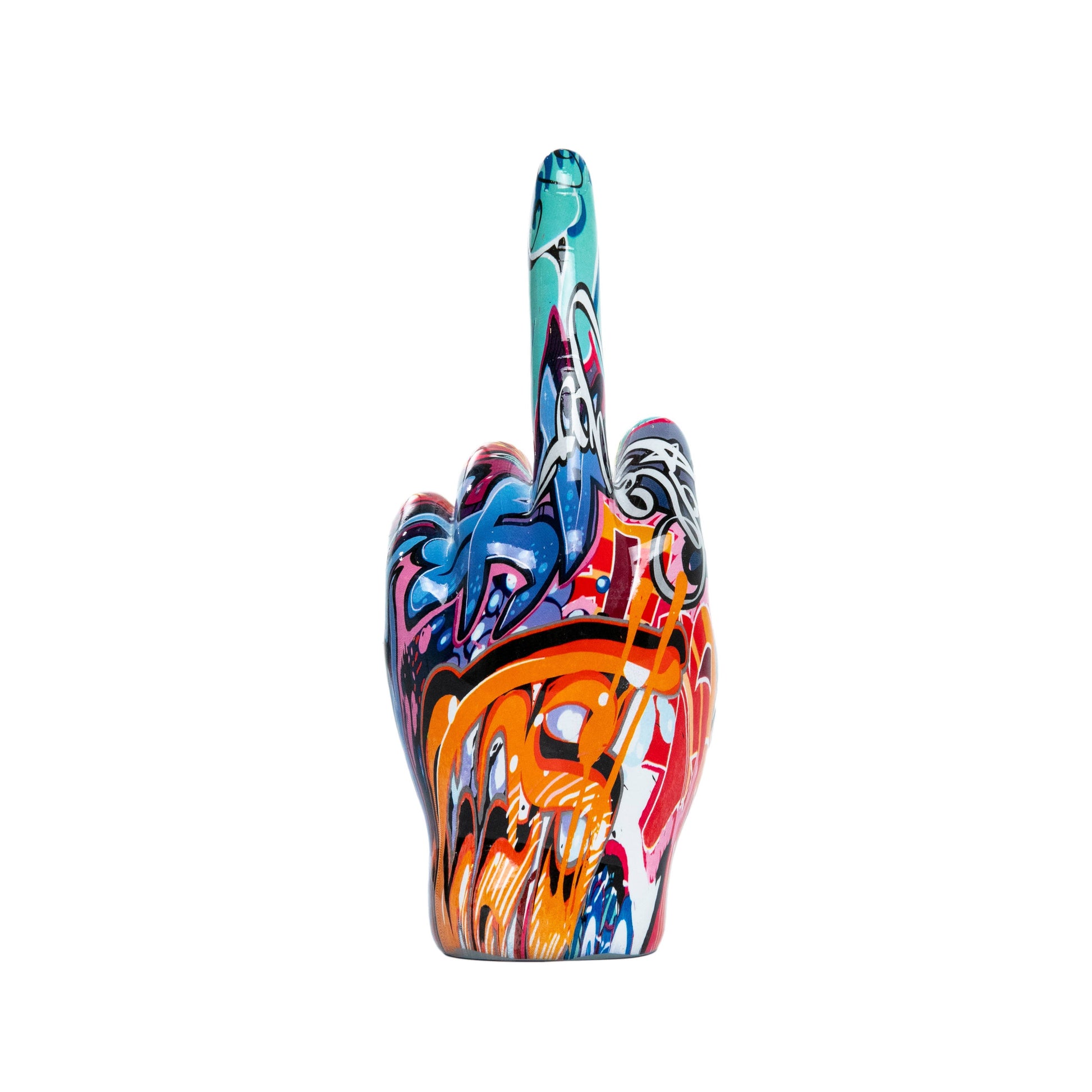 The Tabletop Hand Sculpture inspired by street art features a bold middle finger gesture, blending urban edge with modern design to create a striking conversation piece. Ideal for gifting or enhancing a vibrant, contemporary space, it adds rebellious flair and artistic attitude to any setting.