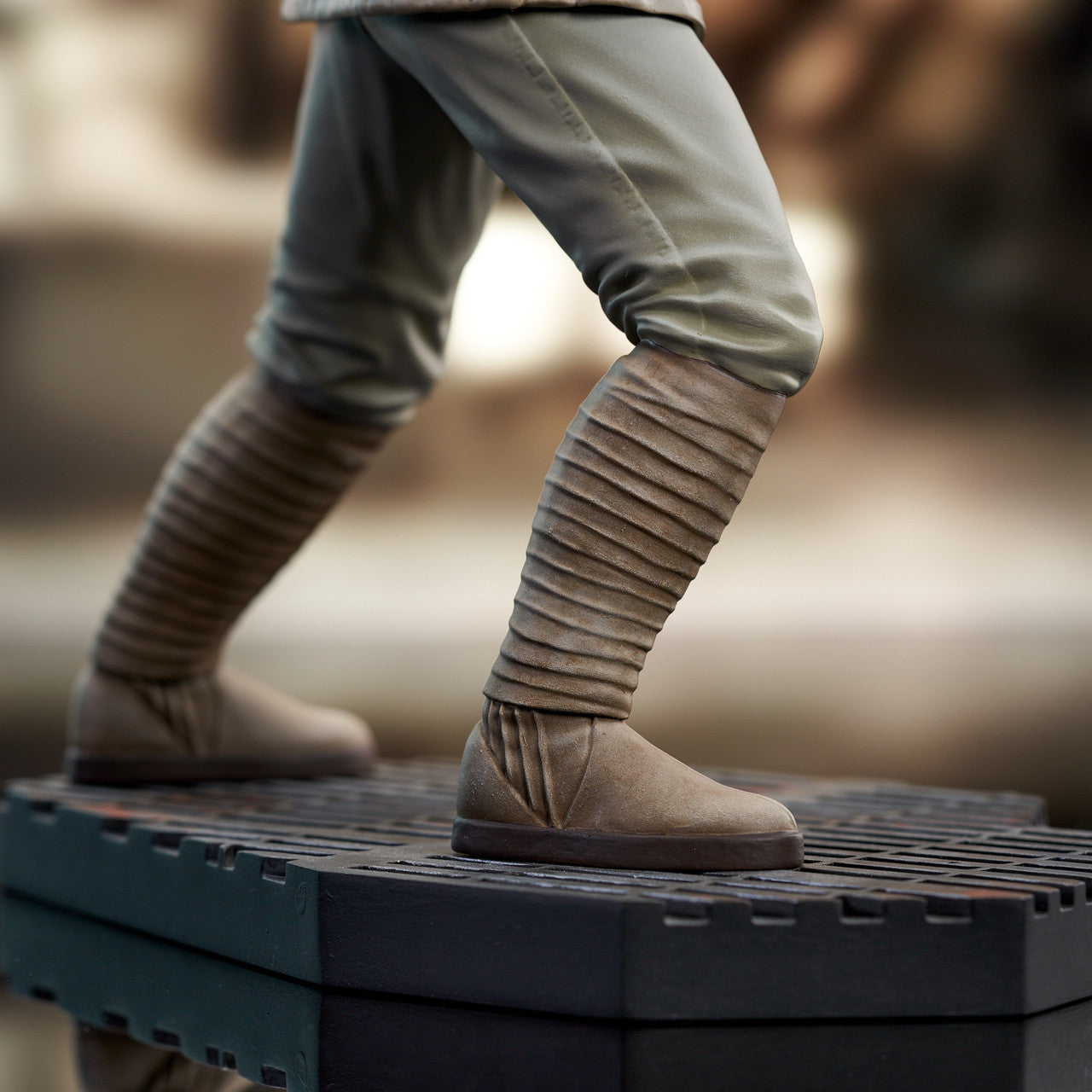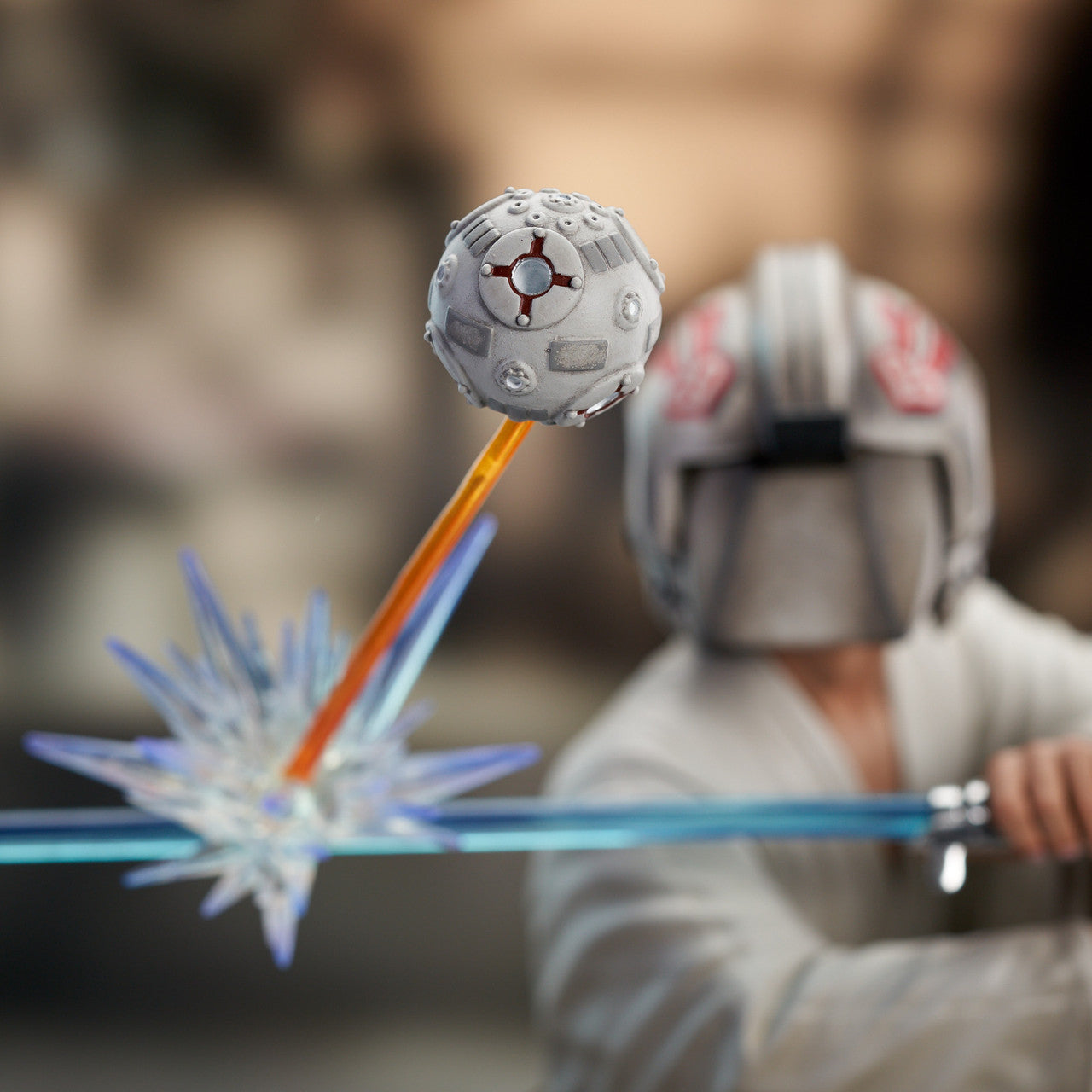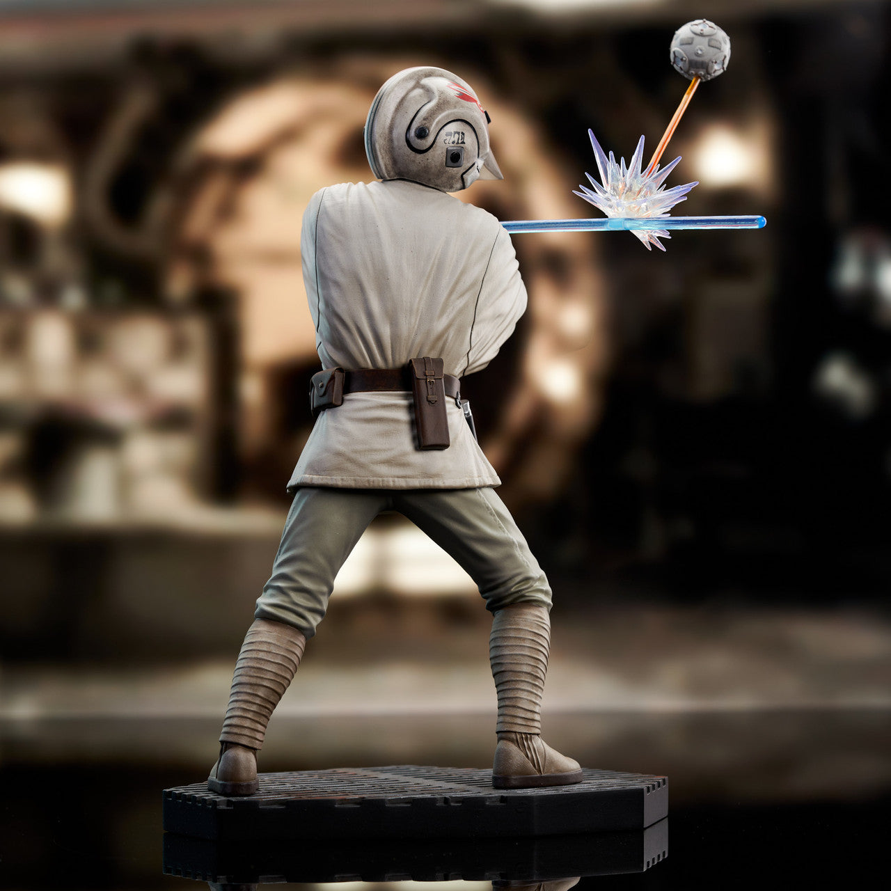 A Gentle Giant LTD release! Use the Force, Luke! The young Skywalker takes his first swing at lightsaber training in this all-new 1/6 scale statue from Gentle Giant LTD! Capturing the famous scene aboard the Millennium Falcon, this statue features interchangeable helmeted and unhelmeted heads, as well as interchangeable lightsaber blades, so he can deflect a shot from the training droid! Limited to only 1000 pieces, it comes packaged with a numbered certificate of authenticity in a full-color box.