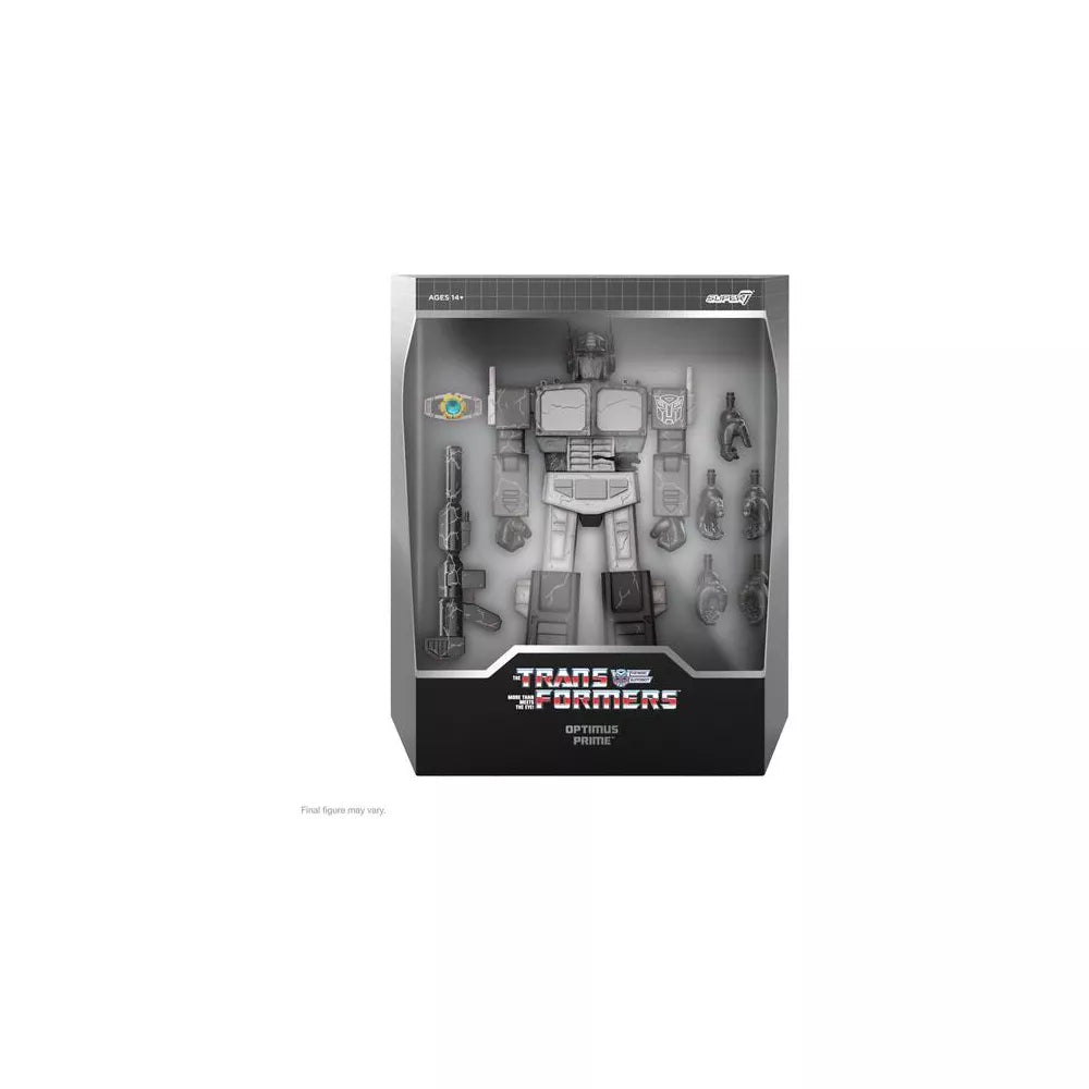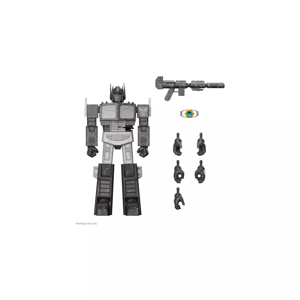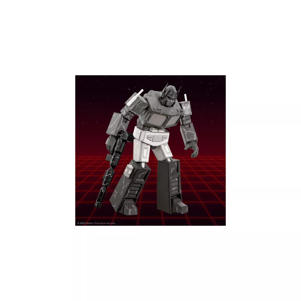 This 7” scale highly articulated, intricately detailed Transformers ULTIMATES! figure of Fallen Leader Optimus Prime is inspired by his emotional-damage-inflicting death in The Transformers: The Movie and features a new grayscale battle-damaged torso with cartoon-accurate matrix storage chamber inside his chest, and comes with multiple interchangeable hands, his blaster, and the Matrix of Leadership.